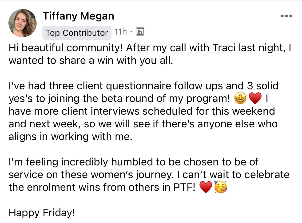Through her new confidence as a valuable and unique coach, she was able to earn $2k in just 8 weeks with 2 clients and shortly after she began hitting consistent $8k-$9K launches, continuing to work with us for over a year...She now lives on her own, supports herself entirely with her business, and has quit her job - something she never imagined possible being from a small, rural town in Canada!